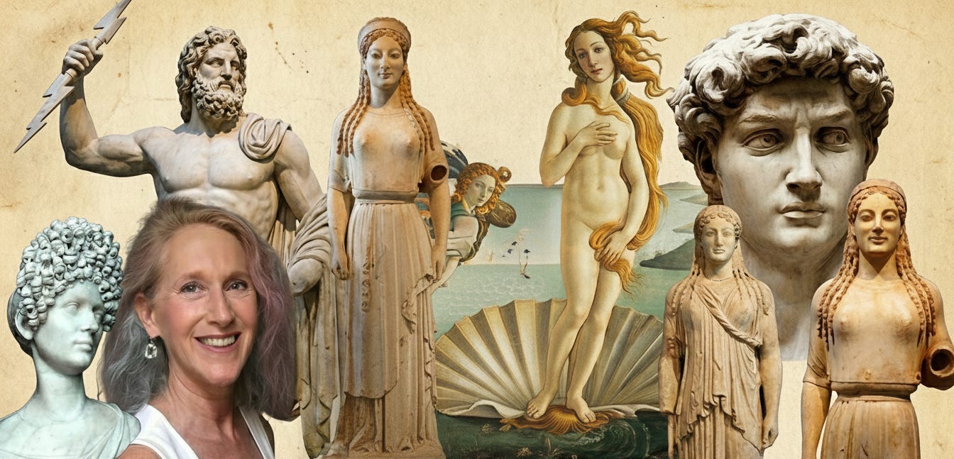 You’ll hear us jump between ancient Greece, Rome, and different time periods, because curly hair continued to show up in artworks over the eras. (I know the Renaissance art is not ancient!)